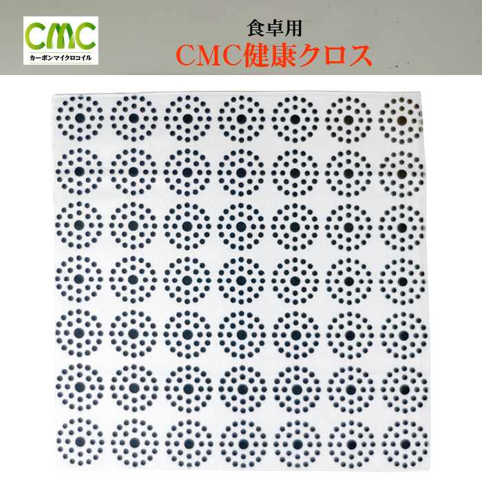CMC健康クロス-AM3 仕様 CMC充填量:約1.1g 生地素材:西洋綿 サイズ:22cm×22cm よくあるご質問 使い方について 食材・飲用水・薬など口に入れる前に、このクロスの上に一旦置いて下さい。(一瞬でOKです)特に電子レンジであたためた時は、必須です。ずっと置いておく必要はありません。鍋敷きの下に敷いても大丈夫です。 ※注意※ 絶対に、電子レンジに入れて加熱しないで下さい! 使用上の注意について CMC健康クロス本体の電子レンジ加熱は絶対にやめて下さい。 有効期限は? CMCの効果は半永久的に保持いたします。 どれぐらいで効果が出る? 食品・飲料をのせた(近づけた)一瞬で効果が出ます。 欠品・在庫切れの場合 ネットで購入できるCMC製品は『楽天(CMC総合研究所直営)』か、正規代理店が運営するネットショップで販売しております。『楽天』に商品在庫がない場合でも代理店のショップでお取り扱いがある場合もございます。 正規代理店が運営するネットショップについてはこちら 熱い物を乗せる場合 耐熱性ではないため、鍋敷きの下に敷いてご利用下さい。鍋敷きの材質は、木や鉄、布などどれでも効果は変わりません。お盆・トレーの下に敷いても大丈夫です。 汚れ防止にビニール袋でカバーをしてもよいですか? クロス・コースターをビニール袋などで覆っていてもCMCの効果は変わりません。食材にクロス・コースターを直接触れさせる必要もありません、近づいてさえいれば大丈夫です。お盆・トレーの下に敷いても大丈夫です。 洗濯について 洗濯可能です。洗濯ネットをご利用ください。洗濯によってCMCの効果が弱まることはありません。 ご購入はこちら 楽天で購入 Yahoo!ショッピングで購入 現在のリンク先: Yahoo!ショッピング正規代理店一覧はこちら Amazonで購入 現在のリンク先: Amazon正規代理店一覧はこちら このカテゴリーの他の製品 CMC健康クロス-AM1 CMC健康クロス 一覧に戻る トップページへ戻る